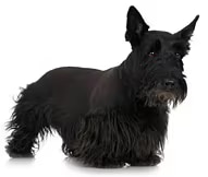 Tienen una barba distintiva que acentúa el hocico, cejas largas y un pelaje exterior áspero que roza el suelo como una falda larga si no se recorta. El pelaje, que muda poco, también proporciona una excelente protección contra el mal tiempo. Su color puede ser atigrado, negro, gris o trigo. Las orejas del Scottie son delgadas y erguidas. El lomo es corto, recto y musculoso, y la cola es de inserción alta. Los Scotties tienen una buena esperanza de vida, de unos 12 a 15 años.